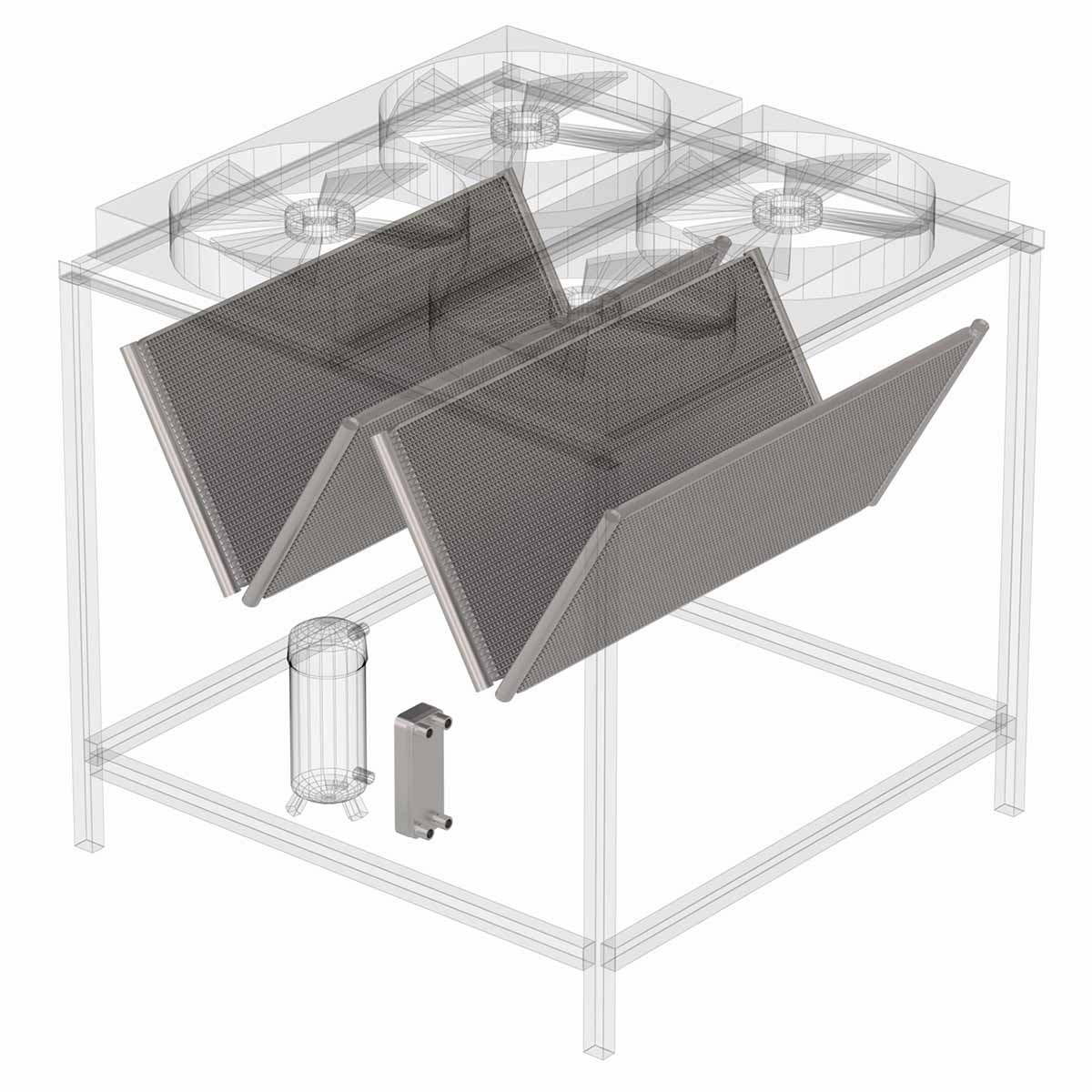 Air-cooled condensers are used in many refrigeration applications, including (but not limited to) food processing plants, supermarkets and restaurants. Brazed aluminium heat exchangers present several major advantages for these applications: They improve energy efficiency, lowering power consumption and reducing the environmental impact of the refrigeration system. The inherent smaller internal volume leads to lower refrigerant charge, which reduces the periodicity of leak inspections and helps them comply with environmental regulations. They lower weight for transportation and mounting, and allow easy maintenance and cleaning that contributes to a reduction of the overall cost.